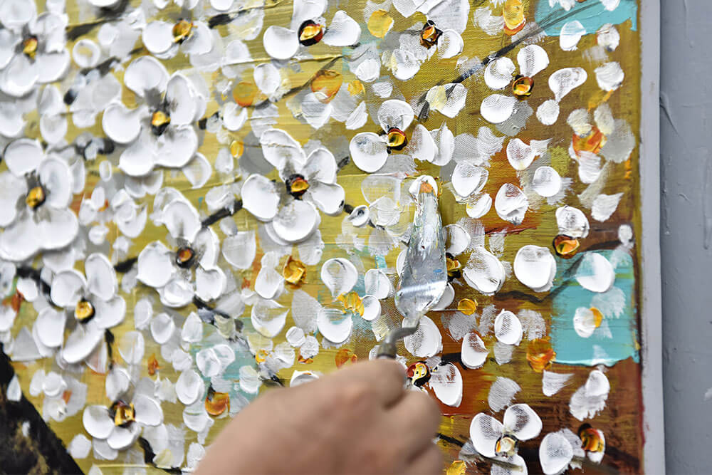 Our artists only use odourless acrylic paints that are harmless to health on durable professional-grade canvas. A practical hanging system is attached to the back of each canvas painting stretched on a canvas frame.