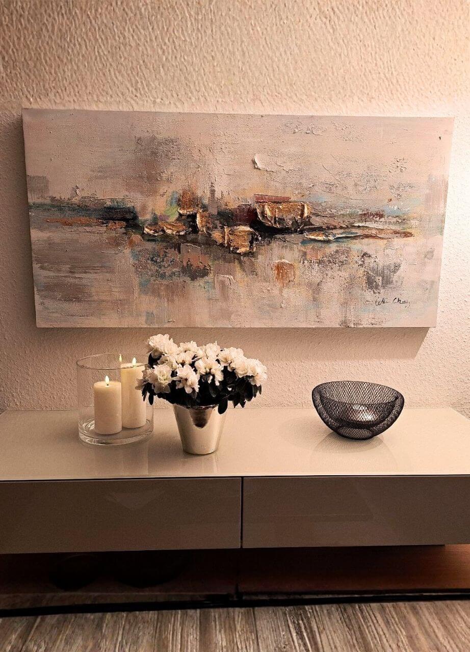 On the hand-painted acrylic painting 'Mirage' you can feel every single brush stroke, so that the high quality of the artwork can be seen at first glance. Selected masterpieces are signed by the artists.