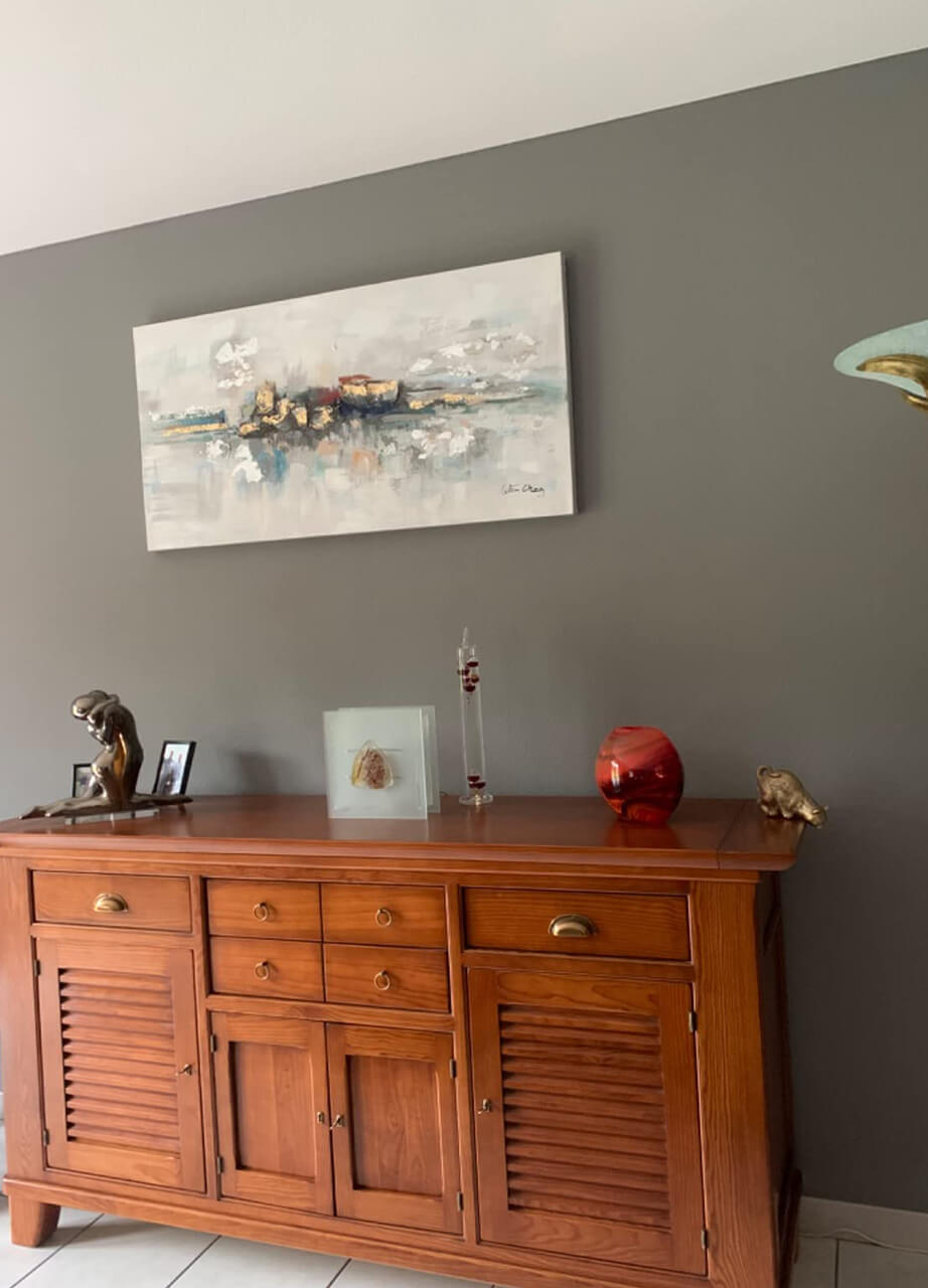 The picture hangs on a coloured wall where it is presented in the best possible way. We are absolutely delighted with the colours and the composition. The ordering and payment process is also excellent. We have already placed our next order. Everything is great!