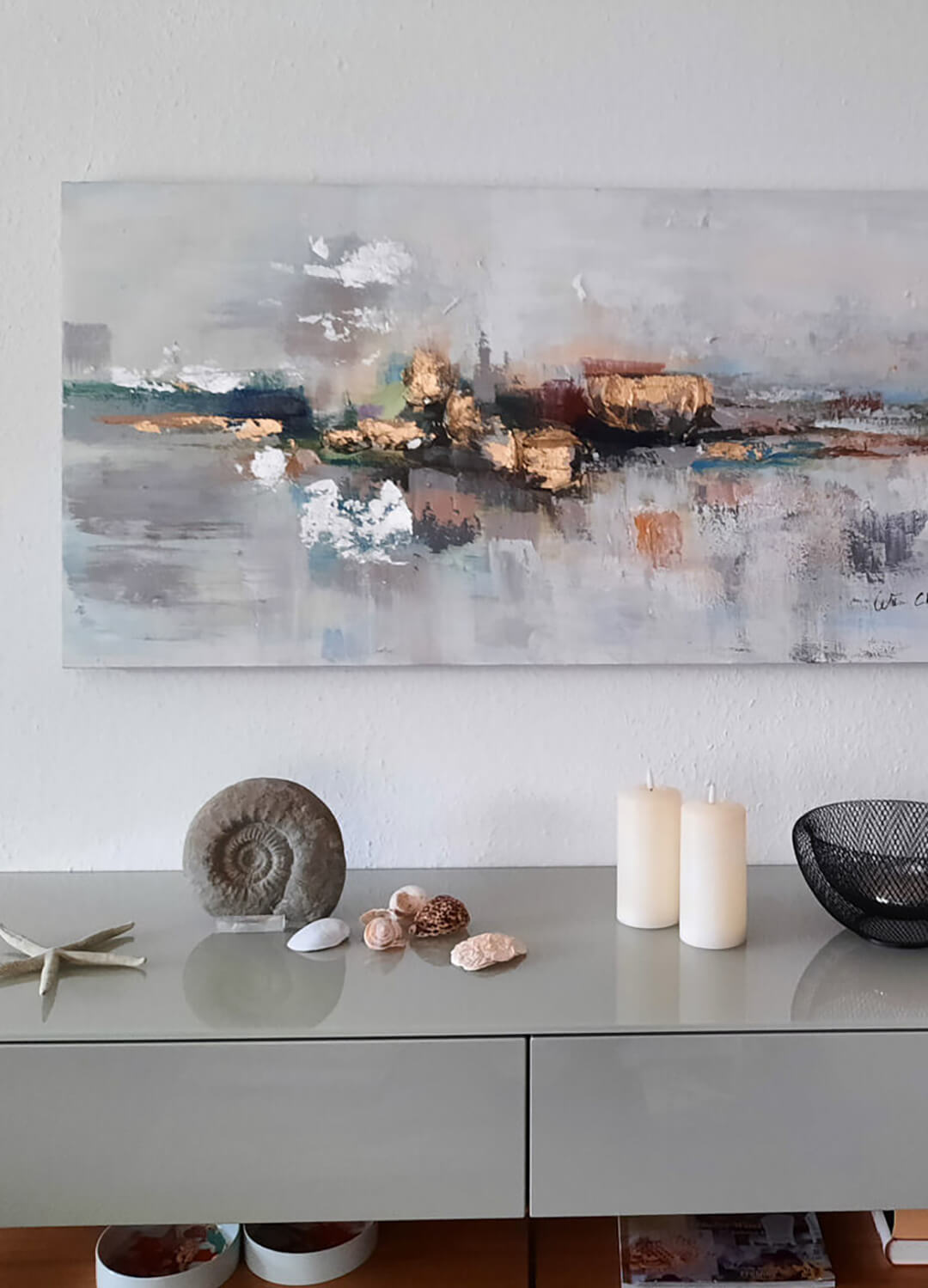Motiv: Acryl Gemälde | Grau; Goldglanz, Silberglanz | 120x60cm