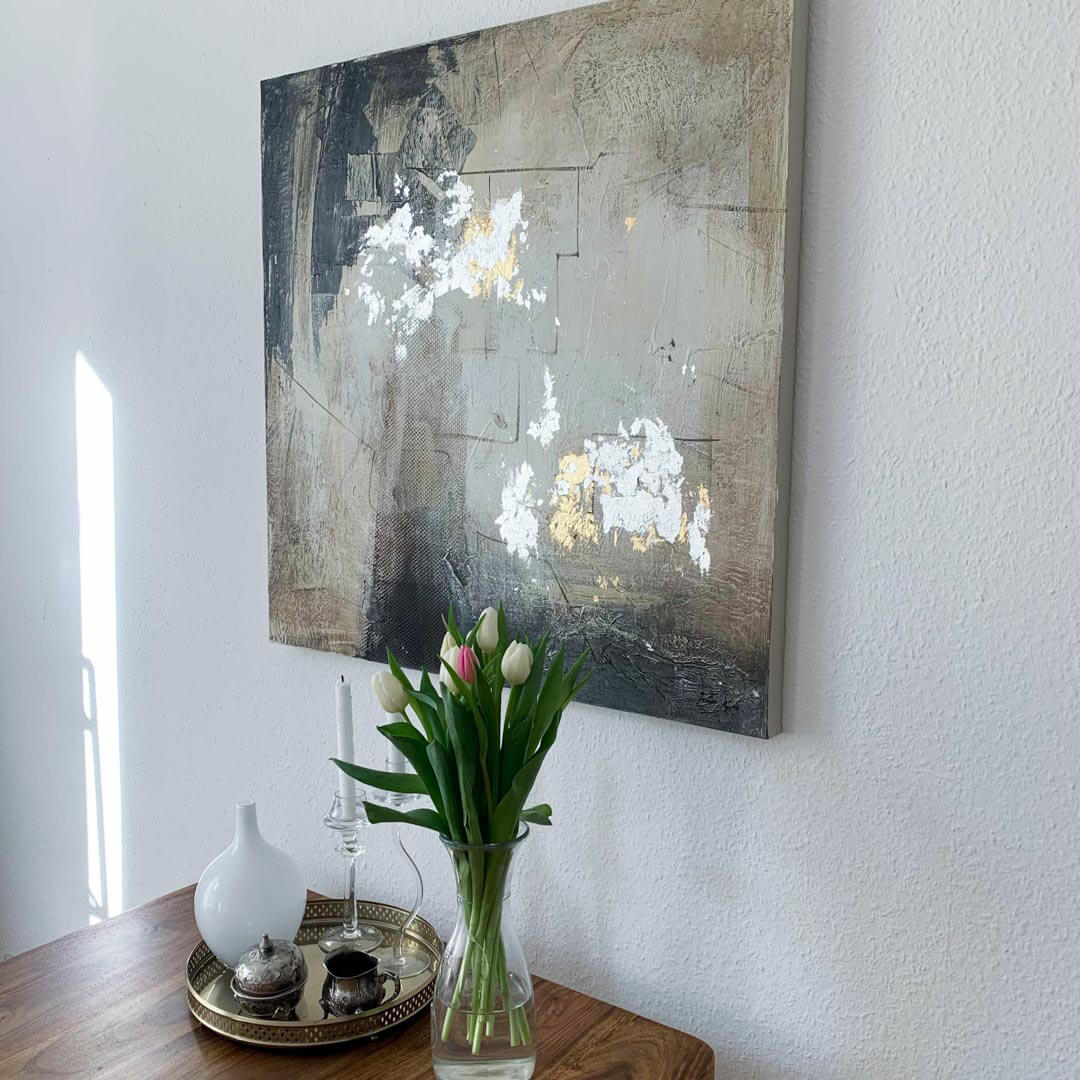 Motiv: Acryl Gemälde | Grau; Goldglanz, Silberglanz | 80x80cm