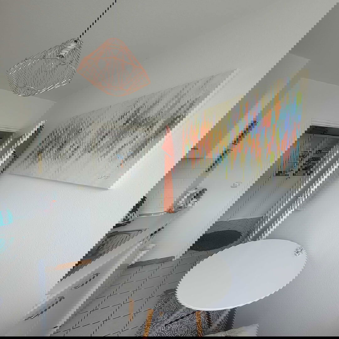 Every Friday noon it comes over us - the well-known 'Weekend Happiness'. This relieving feeling also flows through you due to the extensive colour palette at the sight of this acrylic painting, which makes all rooms shine with its expressiveness. The contrast results from the light background and pure basic colours, which cause a colour explosion! Decorate your stylish office or your colourful kitchen with this hand-painted piece of jewellery and lthe eyes of all viewers shine at every sight!