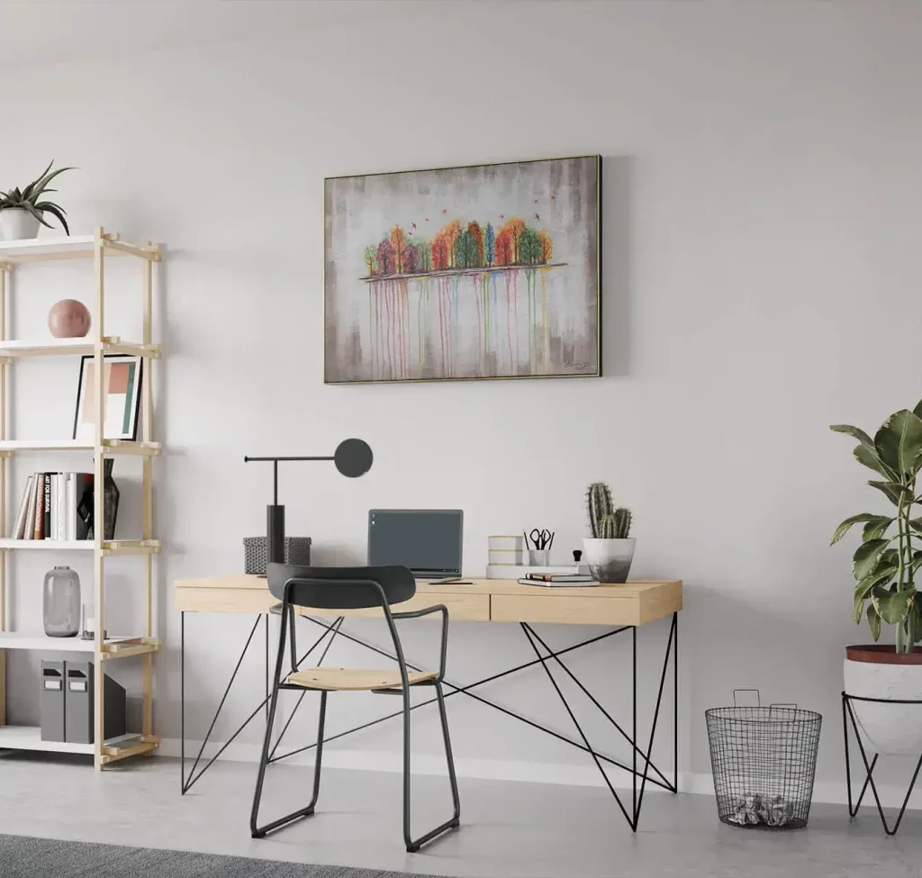 Before you buy, visualise how the artwork will look in your space. Some online art stores, including KUNSTLOFT, offer virtual previews or augmented reality tools that allow you to see how a piece will fit on your wall. You can also use painter’s tape to mark the dimensions on your wall or print a scaled version of the artwork to test placement. This helps ensure the artwork will enhance your space before you commit to it.
