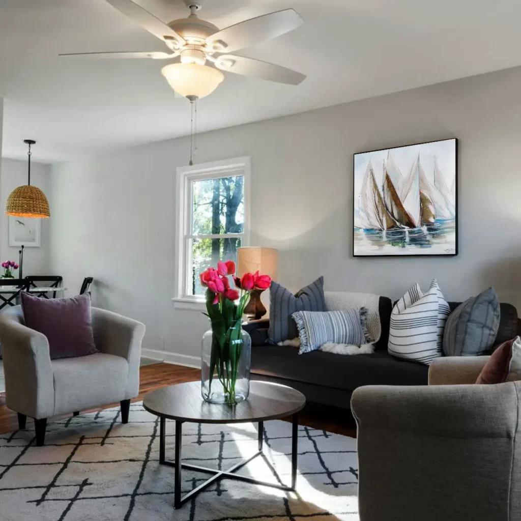 Choose decorative items in neutral or pastel tones that match your current colour scheme. Look for pieces with clean lines and simple designs so they blend seamlessly with your existing furniture.