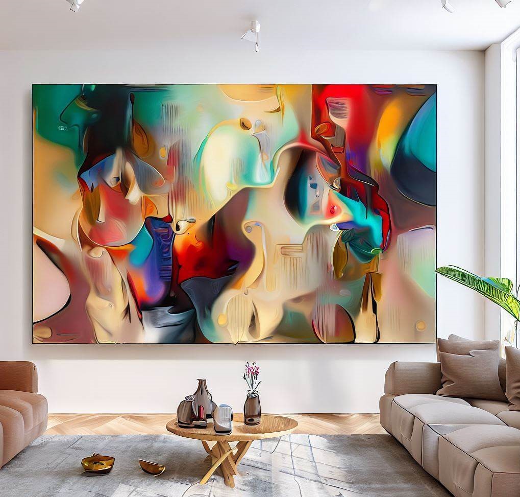 - Consider the style: the style of the XXL artwork should complement the general aesthetics of your modern interior. When choosing the style of the painting, consider current design components such as furniture, color schemes, and overall aesthetics. If you choose an abstract, impressionistic, realistic or other style, make sure that it complements the general interior design idea of your room.